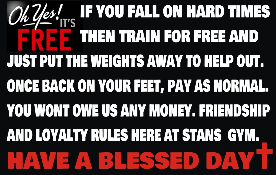 IF I KEPT THIS TO MYSELF I WOULD BE NO FRIEND TO YOU. SO LISTEN FOR JUST UNDER 3 MINUTES TO ME BY CLICKING ON THE VIDEO ON THE LEFT. THANKYOU FOR TRAINING HERE AT STANS GYM. HAVE YOU EVER THOUGHT ? THERE MUST BE MORE TO LIFE! .WELL THERE IS!